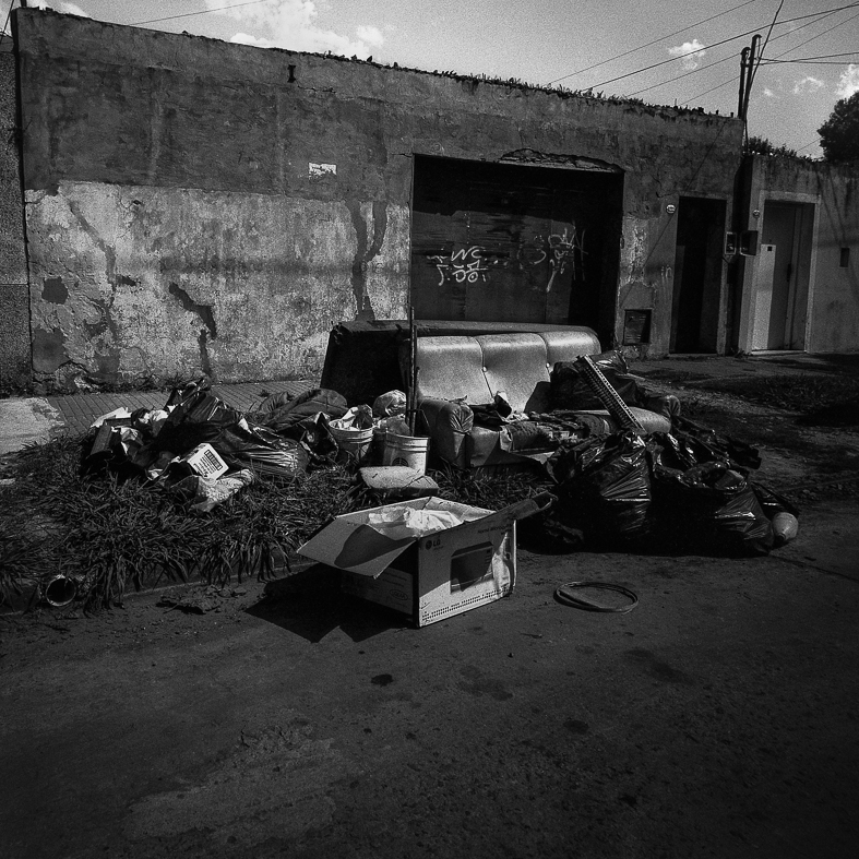 Ariel Galli nos sumerge por los suburbios mostrando la relación que los vecinos establecen con su barrio y su propio espacio. Refleja esa negligencia e indiferencia que está a la vista de todos, y que en algunos casos somos parte. Aunque en sus fotos no aparezcan personas, si están las huellas de la desidia. Una especie de prima hermana de la pobreza. Que también encubre una acumulación de frustraciones por proyectos fallidos e iniciativas que no fueron posibles.