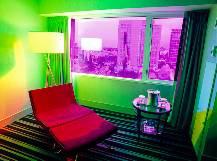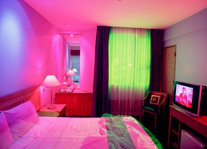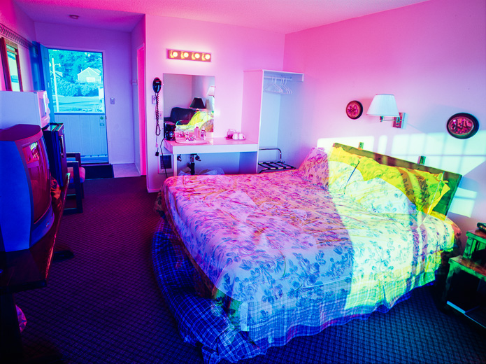 "Tempus Incognitus" (Tiempo desconocido) es mi serie de fotografías a gran escala que muestran habitaciones de hoteles en las que el tiempo y el espacio se desvanecen el uno dentro del otro y se pierde todo sentido del tiempo. A pesar de que la globalización ha homogeneizado nuestros ambientes interiores, las historias que se desarrollan en estas habitaciones pueden ser dramáticas. Hay que pensar en interiores de Edward Hopper bañados en colores de James Turrell dirigidos por David Lynch. Estas habitaciones de hotel carecen de efectos personales para invitar una narrativa.