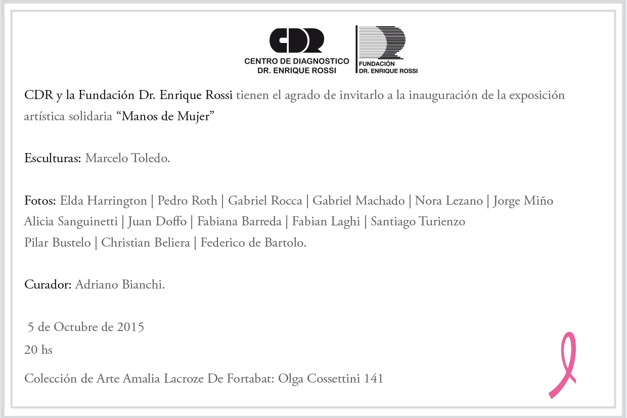 Desde el Centro de Diagnóstico Dr. Enrique Rossi acompañamos y apoyamos la lucha contra el cáncer de mama. Durante octubre, en el mes internacional sobre la prevención de esta enfermedad, desarrollaremos "Manos de Mujer", una importante muestra artística solidaria, libre y gratuita