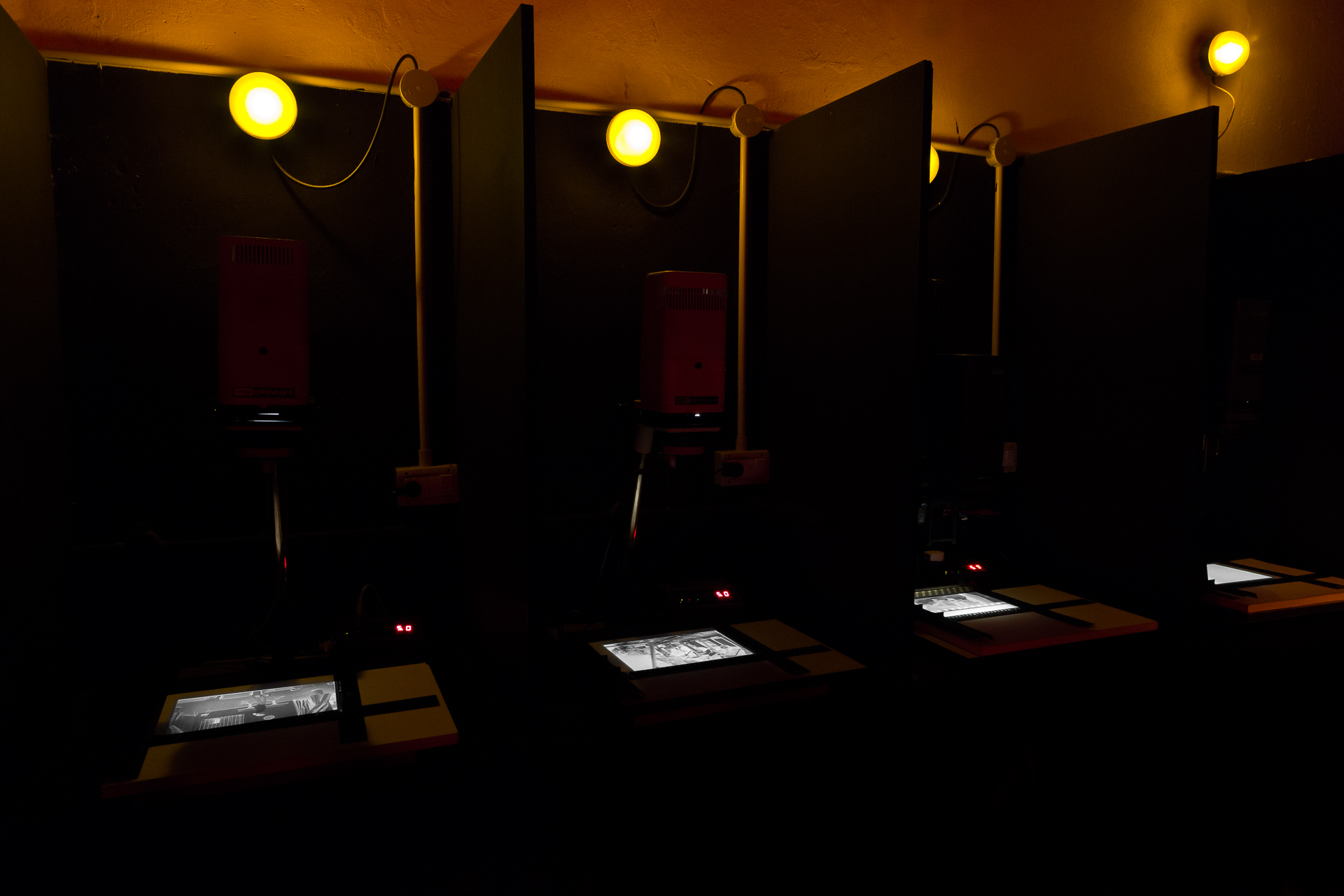 El laboratorio tiene capacidad para que 14 alumnos puedan trabajar al mismo tiempo de manera individual en compartimientos separados, equipados con luz de seguridad, máquinas de ampliación, marginador y todos los elementos que se necesitan para el estudio.